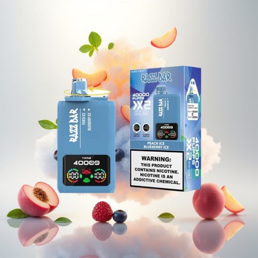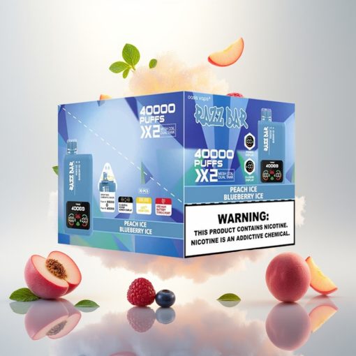 Razz Bar 40000 Puffs Disposable Vape GHIACCIO DI PESCA & GHIACCIO DI MIRTILLO con Schermo, 1.0Ω×2 Mesh Coil, Batteria 650 Mah, Porta Type-C